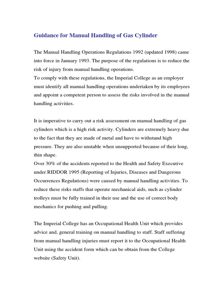 Manual Handling Of Gas Cylinder Occupational Safety And Health