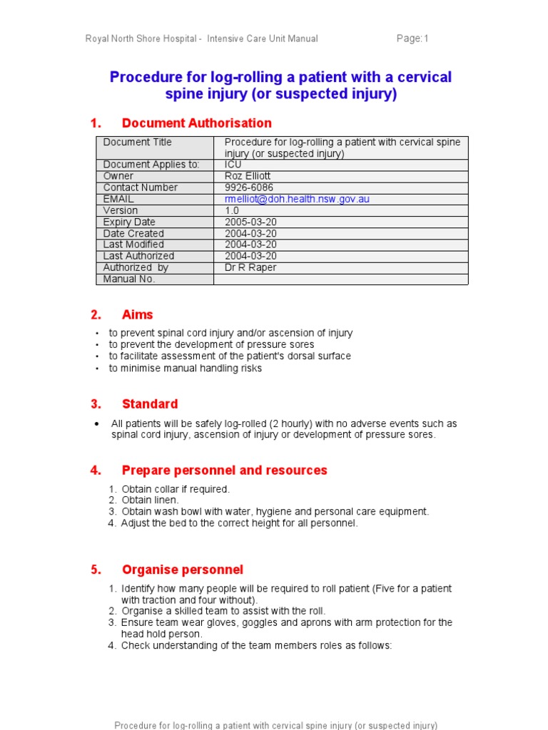 Logroll Guideline R Cp Rnsh Spinal Cord Injury Intensive Care